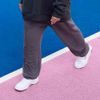 Pantalón jogger con bolsillos laterales y ruedo con elástico interno. Cordones redondos bitono con puntera plástica. Logo en transfer. Tela: Interlock frisado - Punto - 100% Poliéster