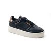 Inspirada en el tenis y la estética de los modelos de los 80´s. Capellada: de cuero sintético con detalles en metalizado y una pieza moldeada en la cartera de ojal. Suela: de goma moldeada con gran adherencia y tracción en diferentes tipos de suelo. Acompaña costura black.
